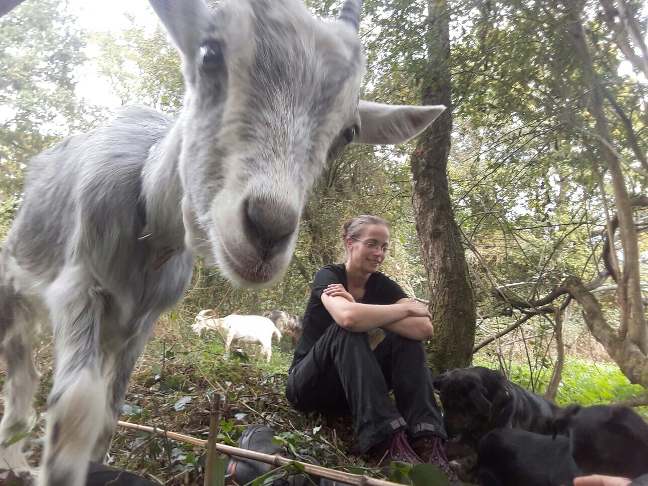 Heute Nachmittag durften dann wieder alle Ziegen zusammen grasen. Wir hatten eine super Stelle, doch dann hat sich ein Teil über den Bach zur Pferdekoppel dabon gemacht. Genau da kam auch der Pferdebesitzer. Er hat zum Glück mit geholfen die Ziegen zusammen zu treiben. Leider ist er nachher mit seinem Traktor an den Ziegen vorbei gefahren. Statt zu warten bis wir sie sortiert hatten. Die Ziegen hatten ziemlich Angst vor dem Traktor. Er ist auch irgendwie immer schneller geworden und ich bin immer zwischen den Ziegen und dem Traktor hin und her gerannt, um zwei an ihm vorbei zu führen. Leider waren dann immer noch ein paar übrig, die sich in den Stall geflüchtet hatten und dann natürlich nicht so begeisterr waren mit mir zurück zu gehen.
