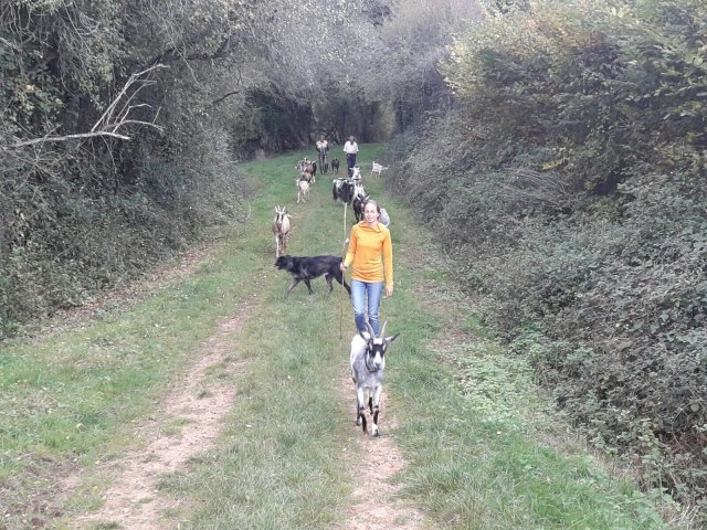 Heute war hier ein ganz normaler Tag. Ziegen melken, füttern und auf die Weide bringen. Nur heute Nachmittag sollte ich dann alleine die Ziegen beim Grasen beaufsichtigen. Zum Glück hat mich Thierry an mein Telefon erinnert, denn promt sind auch Hermine und Helix einen anderen Weg gegangen, als ich mit den restlichen Ziegen. Thierry hat sie dann zwar zurück gebracht, aber sie sind glatt wieder abgehauen. Über den Hang, in den Garten.
