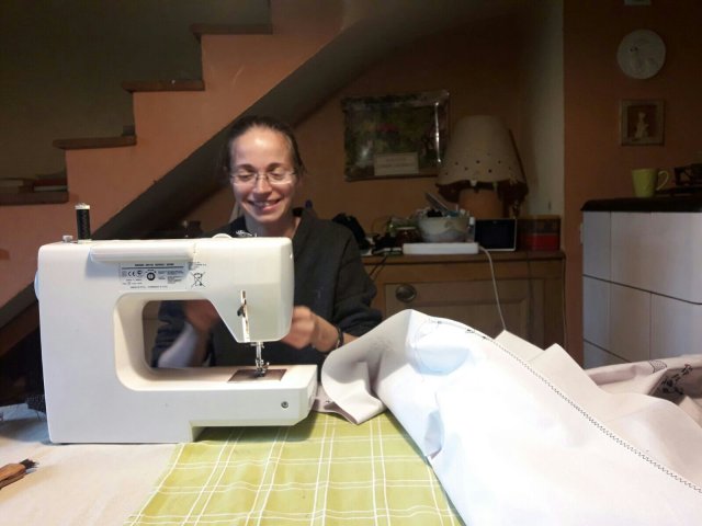 Nachmittags haben Thomas und ich angefangen eine neue Hülle für die Marktvitrine zu nähen, da die vom letzten Jahr kaputt ist. Die Nähmaschine war ziemlich störriach und ständig ist der Faden gerissen. Arrg. Zum Glück waren zweischendurch nochmal die Ziegen dran. Das war eine gute Abwechslung zu der Nähmaschine. Später kam noch Thierrys Freund vorbei, aber Thierry und Elisabeth waren noch einkaufen, so dass sie sich verpasst haben.
