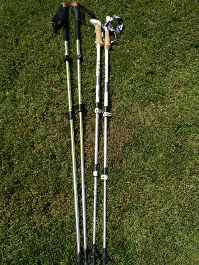 Die Stöcke sind echt Multitalente. Sie sind nicht nur gut, um das Rucksackgewicht besser zu verteilen und die Schultern und den Rücken zu entlasten. Gerade mit den Hunden ist es super. Man kann die Hunde etwas dirigieren mit den Stöcken. Sie auch nahe bei sich halten, wenn Autos kommen, oder einfach mehr Platz einnehmen auf der Straße, wenn die Hunde schlecht zu sehen sind. Ansonsten haben sie mich jetzt schon vor so manchem Sturz bewahrt. Wenn Blondi mal schnell los zieht, kann ich mich mit den Stöcken abfangen, sie aber auch mit den Stöcken etwas stoppen.