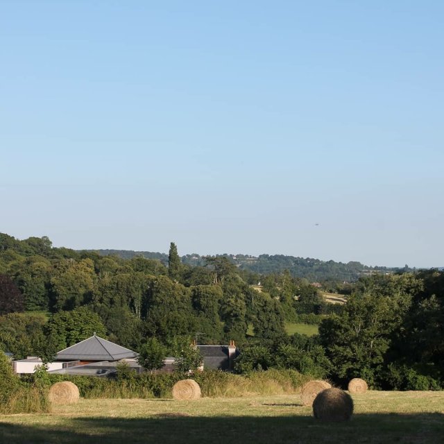 Wir sind dann ziemlich schnell, über einen Waldweg in Deauville angekommen. Wir dort statt den GR zu folgen einfach die direkteste Verbindung durch die Stadt gewählt. Die Architektur war hier nochmal ganz anders. Die Häuser entsprachen eher dem, was an der Ostsee unter Bäderstil bekannt ist. Es waren große, mehrgeschossige Willen, zum Teil mit dem typischen Fachwerk der Region und zum Teil aus Backstein. Die Stadt war voller Leben. Wir haben in einem kleinen Park eine Pause gemacht. Die Hunde und wir brauchten sie wirklich. Deauville ging nahtlos in Trouville-sur-mer über. Wir überquerten einen Fluss und da gerade Ebbe war, war der Fluß fast leer. Ich finde das wirklich immer wieder beeindruckend wie das Wasser kommt und geht. Auch diese Stadt war ziemlich lebendig. Die Leute saßen in den Restaurants und flanierten die Straßen entlang. Es war schön zu sehen, aber wir mussten weiter. Wir hatten ja noch keinen Schlafplatz. Weiter dem GR folgend ging es bei noch ziemlich prallem Sonnenschein erstmal steil den nächsten Hügel rauf. Blondi und ich brauchten eine Pause. Thomas war in der Zeit Wasser holen und nach Schlafmöglichkeiten fragen. Es sah erstmal nicht gut für uns aus. Alles war mehr als einen Kilometer weit weg. Also ging es erstmal weiter den Hügel rauf. Neben uns war auf einmal der Eingang zu einem Feld auf dem Strohballen waren. Ich war so froh und wollte nicht mehr weiter. Wasser haben wir genug, da Thomas die Reserveflaschen auch mit Wasser füllen lassen hat. Wir hoffen jetzt das der Bauer die Strohballen nicht heute Nacht holt bzw. das ihn unser Zelt nicht stört hier am Rand. Wir sind heute wirklich geschafft. Wir waren neun Stunden unterwegs. Selbst Marvin war müde als wir ankamen. Wir hatten auch keine Lust mehr zu kochen, also gab es Sandwiches. Das war auch lecker.