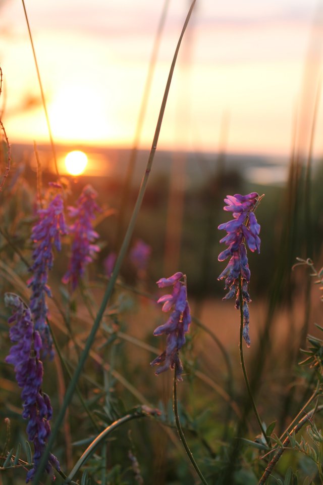 Am Leuchtturm von le Hourdel angelangt, haben wir erstmal eine Pause eingelegt. Am Leuchtturm hat Thomas Kaffee für uns gekocht. Der Weg führte nachher immer entlang des Deiches. Hier gibt es relativ viel Grün und an manchen Stellen viele Blumen mit kleinen violetten Blüten. Dazwischen sind immer wieder Wasserlöcher. Die Hunde waren glücklich und konnten rennen. Heute ist ein großer Mond angesagt und die Schäfer haben ihre Tiere weiter weg vom Deich gebracht. Großer Mond bedeutet, dass mit der Flut mehr Wasser kommt. Das haben wir kurz vor der Stadt auch gemerkt. Das Wasser überschwemmte die Wiesen und auch unseren Weg. Zum Glück war der Weg wirklich nicht mehr weit und das Wasser nicht hoch.