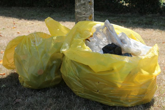 Gestern Abend haben wir beschlossen heute einen „Day for the planet“ einzulegen. Ich hatte gestern Abend mal wieder was über Plastik im Meer gelesen und ich denke oft über unsere Rucksäcke nach. Die Rucksäcke und deren Inhalt bestehen überwiegend aus Polyesterfasern und selbst wenn wir sehr darauf achten, was wir an Essen kaufen, ist doch vieles in Plastik verpackt. Und dann sind da noch die Wege auf denen wir bis jetzt unterwegs waren, dort liegt oft so viel Müll und Zellstoff. Alles Gründe für unseren Planet-Day. Wir sind heute Morgen viel an größeren Straßen gelaufen und haben alle Dosen und Plastiksachen eingesammelt, die wir gefunden haben. Wir hatten leider keine Mülltüten dabei und als die ersten kleinen Beutel voll waren, war da zum Glück ein Auto, dessen Fahrer uns anbot den Müll im Kofferraum abzuladen. Er hatte leider keinen neuen Müllbeutel für uns. Thomas hat dann am Weg McDonald’s Tüten gefunden und ich hatte noch ein paar Hundetüten für den Müll, aber wir mussten kurz vor dem nächsten Ort eine Müllpause einlegen, da alle Tüten und unsere Hände voll waren. Im Ort war ein Mann so nett und hat uns große, gelbe Säcke gegeben und den bis dahin gesammelten Müll entsorgt. Obwohl wir an der Straße unterwegs waren, konnten wir doch viel auf den Stoppelfeldern rechts und links der Straße laufen und trozdem haben wir so viele Dosen und Plastik gefunden. Am Ende hatten wir einen Sack komplett voll und den anderen zur Hälfte. Wir sind beide auch auf der selben Straßenseite gelaufen, sonst hätten wir sicher noch mehr Müll gefunden. Ich bin gespannt, wie das in den anderen Ländern mit dem Müll so ist. Würde es auf unsere Fundstücke hier Pfand geben, wir hätten ein kleines Vermögen gehabt. Wir haben dann mittags mit dem Sammeln gestoppt, da es mit dem Rucksack auf dem Rücken und dem Hund an der Leine ganz schön anstengend ist. Es ist gar nicht so einfach nachher nicht weiter nach Plastik zu gucken, sondern etwas die Landschaft zu genießen.