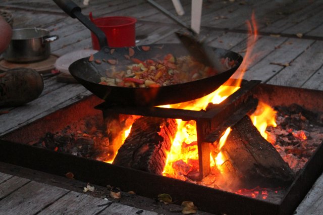 Da Sabien erst spät von Arbeit kam, habe ich es nach dem Einkauf nochmal mit schlafen versucht und das hat dann auch geklappt. Als sie zurück war, haben wir zusammen gekocht. Wir haben Gemüse geschnippelt und Naas hat alles dann mit dem Wok auf dem Lagerfeuer gekocht. Das war so lecker. Mhh. Es war ein wirklich schöner Abend.