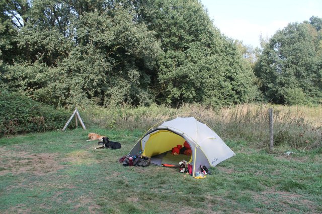 Jetzt sind wir wieder auf einem Biwakplatz. Der Platz ist gut besucht und es sind eine Menge Zelte hier. Draußen zirpen die Grillen.