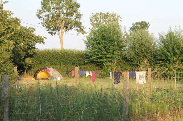 Da es so warm war, haben wir in einem Vorort von Torhout angefangen Leute zu fragen, ob sie einen Platz für unser Zelt haben. Leider war das ziemlich enttäuschend. Die meisten sprachen nur Niederländisch und hatten keinen Platz für uns. In einer weiteren Pause, haben wir dann eine Chouchsurfinganfrage raus geschickt. Die Chance, dass sie rechtzeitig gelesen wird, war ziemlich gering. Als wir dann in der Stadt in einem Café saßen, kam tatsächlich die Zusage. Das war so gut. Der Platz war etwas außerhalb der Stadt und wir sind in die Richtung aufgebrochen.