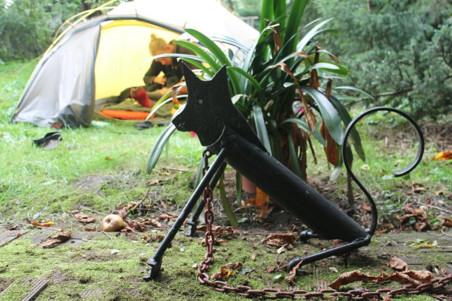 Kurz vor dem nächsten Ort haben wir an einem Hof gefragt, ob wir unser Zelt aufstellen dürfen. Der Großvater hat uns einen schönen Platz unter einem Apfelbaum gezeigt. Wir stehen etwas unterhalb der Bahnstrecke neben dem Hof. Die Familie war erstmal etwas überrascht als sie ankam. Ein Zelt im Garten. Nach kurzem erzählen was wir machen, hat sich aber die erste Anspannung gelegt. Das jüngere Mädchen hier heißt auch Paula, wie meine Schwester und der Älteren konnten wir etwas beim Trompete spielen zuhören. Ansonsten haben wir uns einfach ins Zelt gekuschelt. Thomas hat heute abend gekocht und jetzt essen auch gerade die Hunde.