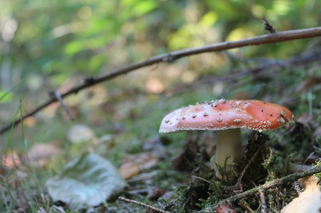 Der Weg führte dann über eine Forststraße bergab. Wir sind zwischendurch im Wald über das schöne Moos gelaufen. Wir wollten ja so gern noch ein paar Pilze finden. Wir haben leider nur einen einzigen Pilz gefunden.