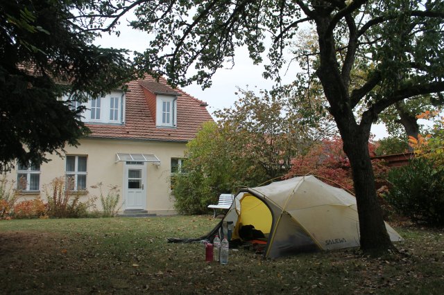 Wir sind dann noch bei der evangelischen Kirche fragen gewesen. Dort war es zum Glück in Ordnung, dass wir unser Zelt im Garten aufschlagen. Ich war so froh. Ich war heute ziemlich müde, da ich die ganze Zeit das Gefühl hatte ziemlich schnell zu laufen.