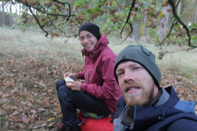 Heute morgen war es wieder ziemlich windig mit Nieselregen. Wir sind aus dem Ort in Richtung Wald aufgebrochen und irgendwie ist dann alles gut, sobald wir im Wald sind.