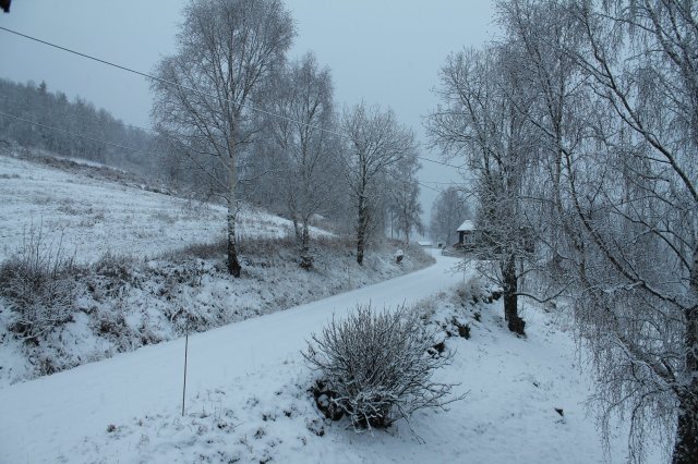 Der Schnee macht es hier jetzt alles ganz winter- und weihnachtlich, auch wenn es hier auf dem Hof nicht so adventlich geschmückt ist.
