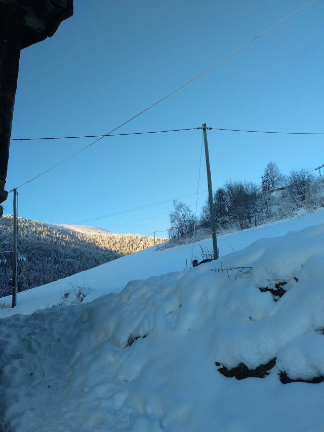 Heute hatten wir wieder einen freien Tag. Ich war aber schon so zeitig wach, dass ich darauf gewartet habe, dass es heller wird. Heute hatten wir wirklich tolles Wetter. Blauer Himmel. Sonnenschein. Die Bäume sahen mit dem Schnee aus wie gemalt.