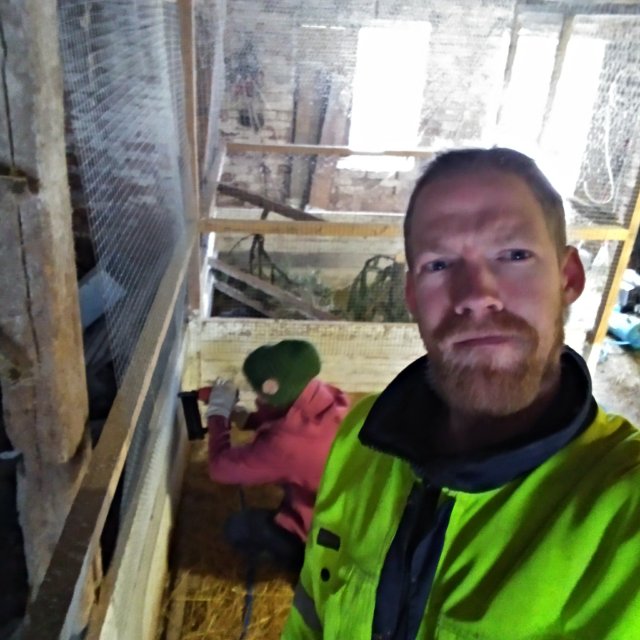 Heute hat Thomas die Schweine alleine gefüttert und ich die kleinen Tiere. Ola hat mit dem Traktor den weg von dem nassen Schnee befreit, während Maria Kaninchen schlachtete.