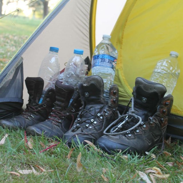 In Deutschland haben wie uns auch für Thomas für neue Schuhe entschieden. Es sind Meindl Borneo, mit innen Leder, geworden. Ein echter Klassiker. Am Anfang natürlich etwas steif. Das Gewicht liegt so in der Mitte. Wasserdicht durch gutes Fetten. Gut zu schnüren und durch die vielen Ösen gut individuell einzustellen. An manchen Tagen ist es bestimmt etwas zu viel Schuh für unsere Strecken, aber Thomas ist glücklich mit ihnen. Im etwas anspruchsvolleren Gelände ist er mit ihnen aber gut ausgerüstet. Es gibt einen schwaren Gummiumlauf über der Sohle, was den Schuh zusätzlich vor Wasser und Geröll schützt. Das nicht so praktische war, das Thomas ja direkt mit ihnen weiter laufen musste. Ein schweres Paar Schuhe im Rucksack wollten wir nicht. So waren die ersten Tage der Umstellung und des Einlaufens etwas anstrengend und mit Schmerzen verbunden.