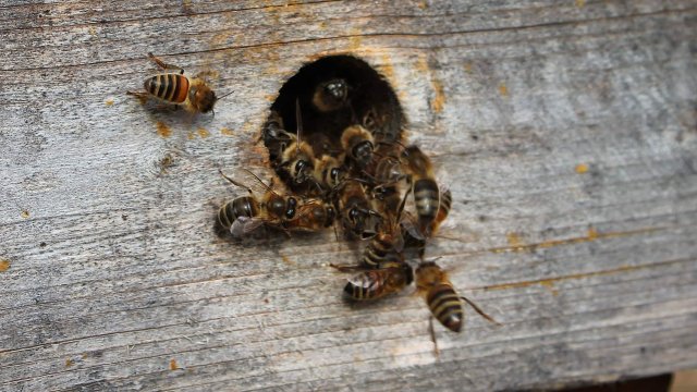 Der zweite Schwarm wirkte nicht ganz so gesund. Es waren wesentlich weniger Bienen in der Box und dafür ziemlich viele kleine Fliegen. Den Schwarm hat sich Maria etwas genauer angesehen und auch eine Wabe herausgeholt. Sie hat versucht zu sehen ob die Bienen schon Nachwuchs züchten. Bei der zweiten Wabe, die sie raus holen wollte, wurden die Bienen etwas gereizt, so dass Maria abgebrochen hat. Wir nehmen an, dass in dieser Wabe der Nachwuchs gezüchtet wurde.