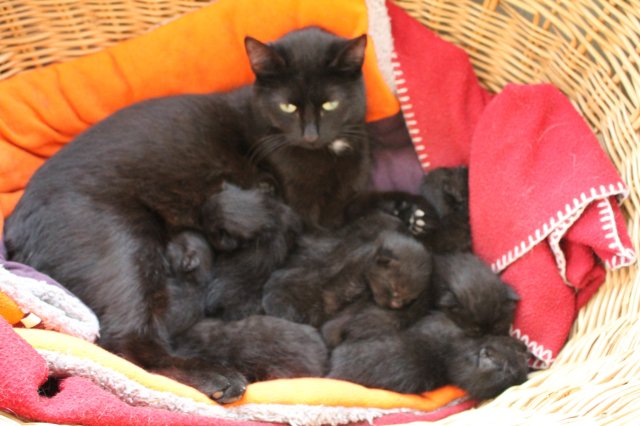 Wir haben dann die Kaninchen einer Mutter mit schwarzem Fell umgesetzt. Sie hat neun Kaninchenkinder und davon ist nur eines braun, der Rest hat auch schwarzes Fell. Die haben ihr neues Gehege gleich ganz neugierig erkundet. Die Kaninchen finden Thomas richtig gut. Sie halten super still wenn er sie rumträgt. Bei mir zappeln sie so sehr, dass es wirklich schwierig ist sie auch nur ein kurzes Stück zu tragen.