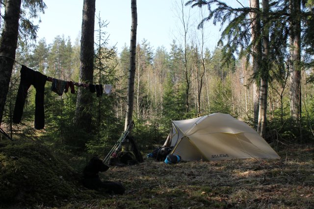 Wir haben uns im Wald trotzdem erstmal eine schöne Stelle gesucht und unser Zelt aufgebaut. Als unser Zelt stand am auch noch die Sonne raus. Auch die Düse unseres Kochers haben wir wieder geöffnet, so dass das Kochen heute richtig schnell ging. Und wir jetzt satt und glücklich in den Schlafsack gekuschelt sind.