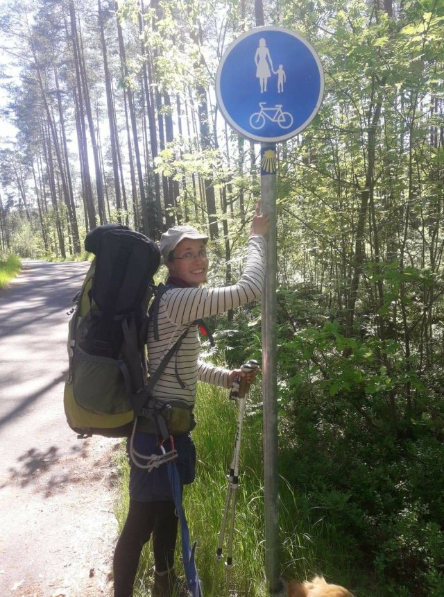 Nach einer kurzen Pause ging es etwas mehr landeinwärts zur nächsten Stadt. Die Ausschilderung war wieder nicht so gut, doch statt unseres E9-Zeichens, haben wir die gelbe Muschel gefunden. Wir sind dann ihr gefolgt. Es ist das erste Mal auf unserer Reise, dass wir der Muschel in Richtung Santiago folgen können. Das finde ich wirklich schön.