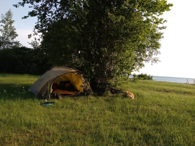 Kurz vor dem Ziel, als wir nur noch die einzigen Fahrgäste waren, stieg ein finnischer Backpacker ein. Er fuhr mit dem Bus zum nächsten Campingplatz. Die Begegnung war nur kurz und irgendwie etwas wirr. Er hat wohl auch schon am Strand gezeltet, obwohl er wusste, dass dies verboten ist. Ich finde das nicht gut. Ich finde wir sind zu Gast in diesem Land und sollten uns an die Regeln, die wir kennen, halten. Es drückt auch den Respekt gegenüber den Menschen hier aus und es bewahrt das „Jedermannsrecht“ (auch wenn es hier glaub ich nicht so heißt). In Riga im Outdoor-Laden haben sie uns erzählt, dass man bis 300 Meter hinter der Küstenlinie nicht zelten darf, auch wenn es kein gesondert ausgezeichnetes Naturschutzgebiet ist. Das wussten wir bis dahin auch nicht, aber wir sind auch nur durch Naturschutzgebiete bis jetzt gekommen. Komisch ist manchmal nur, dass es trotz Zeltverbot und Natuschutzgebiet erlaubt ist Häuser und Campingplätze bis zur Küste zu bauen. Das ist gerade im Naturschutzgebiet besonders schade.