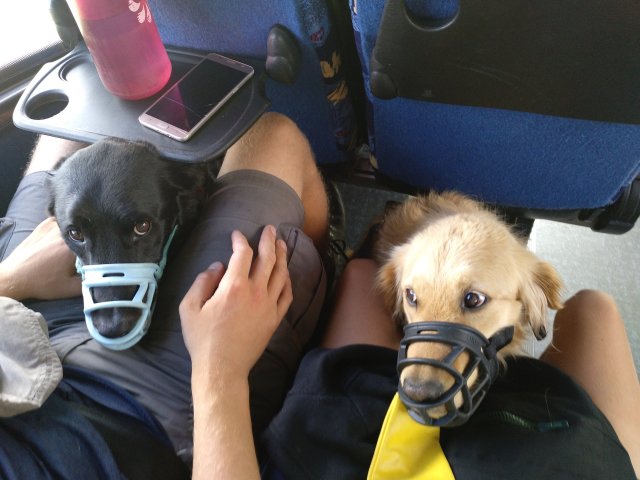 Am Busbahnhof haben wir dann am Schalter ein Ticket für den nächsten Bus gekauft. Die Frau war super unfreundlich und wir waren froh als wir das Ticket hatten. Wir hatten noch Zeit bis unser Bus fuhr und haben draußen gewartet. Es hatte mittlerweile aufgehört zu regnen. Ein paar Katzen schliefen in der Sonne und saßen an verschiedenen Plätzen am Busbahnhof. Die Katzen waren sehr entspannt, auch noch als sie unsere Hunde sahen.